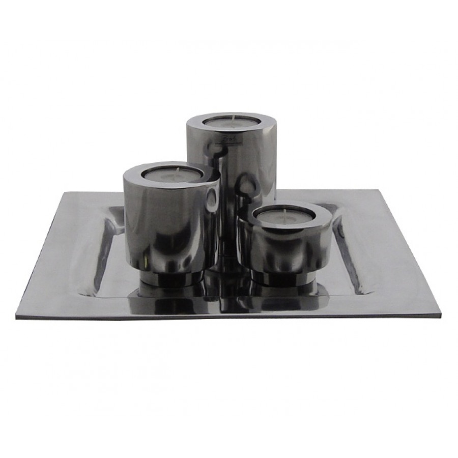 Kaarsenplateau plus drie waxinelichthouders gepolijst aluminium