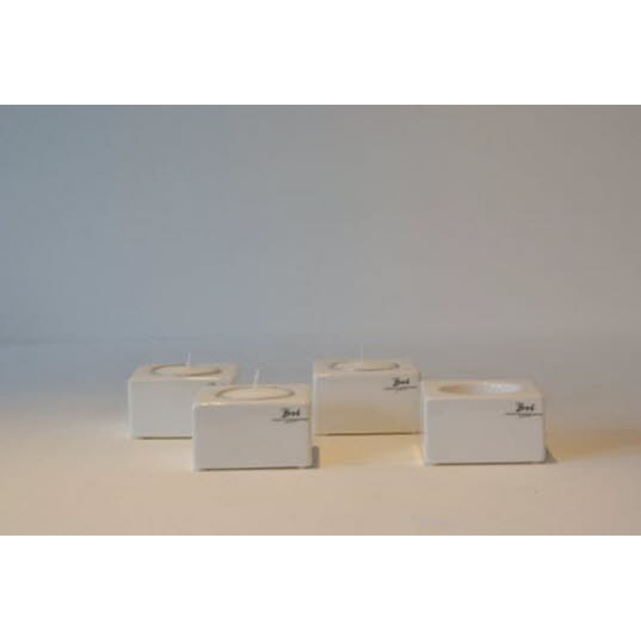 Waxinelichthouder. In wit cheramic uitgevoerd. Een decoratieve waxinelichthouder die kan worden gezien.
