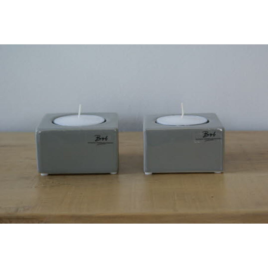 Waxinelicht houder Grijs vierkant . In grijs cheramic uitgevoerd. Een decoratieve kandelaars die uitstraling geeft.