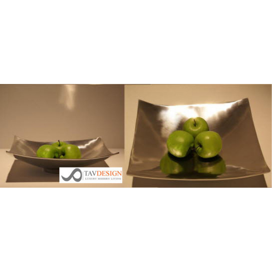 Een vierkante schaal in nikkel design. Een decoratieve schaal die niet weg te denken is