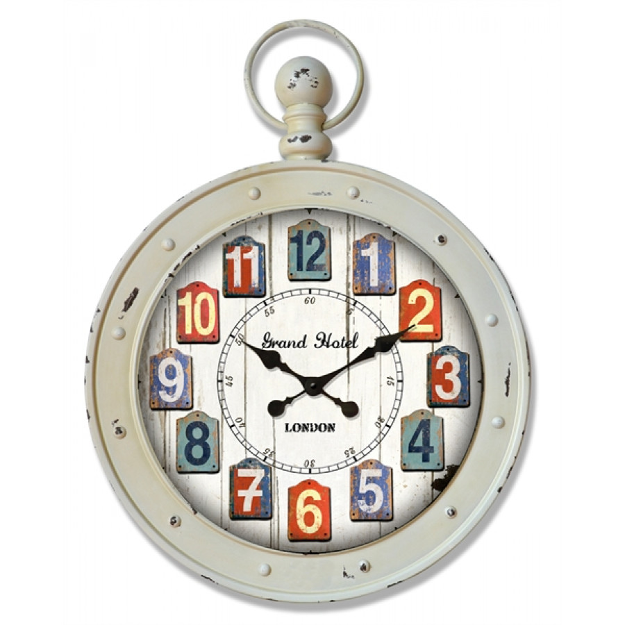 Deze unieke grand hotel wandklok is wit van kleur, heeft een lengte van 79 cm en is 60 cm breed. De wandklok bestaat uit oud wit metaal en oogt prachtig. Uw interieur wordt hierdoor erg modern. Door de witte kleur kan deze klok op veel plaatsen in huis worden opgehangen, het is een echte blikvanger. Bent u op zoek naar een mooie klok of heeft een lege ruimte aan de muur die u graag op wilt vullen? De wandklok Grand Hotel is een mooie keuze, uiteraard ook leuk om cadeau te geven, want deze klok komt in ieder interieur mooi tot uiting.