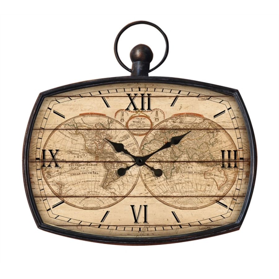 De wandklok Map of World is zwart metaal van kleur en is 70 cm lang en 69 cm breed. Als u een unieke wandklok in huis wilt halen, dan is de Map of World een goede keuze. De klok oogt mooi en prachtig afgewerkt met Romeinse cijfers en twee afbeeldingen van de wereld. De vorm maakt het echt een blikvanger in iedere ruimte. Als u een leuk cadeau zoekt voor iemand met een klassiek of juist heel modern interieur, dan is de Map of World wandklok ook een goede keuze.