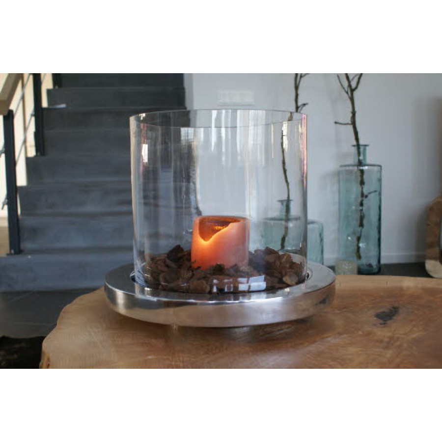 Rond Aluminium Kaarsen standaard, met duidelijke helder rond glas